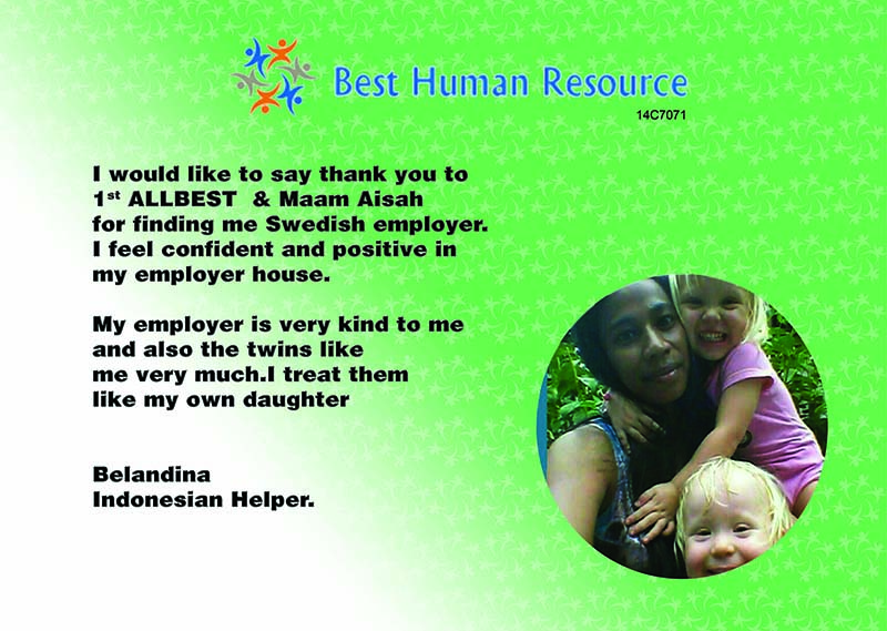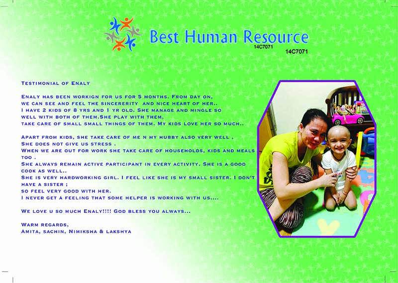 Choose Best Human Resource for peace of mind—whether you're hiring a live-in maid, part-time domestic helper, or a caregiver for elderly or children, we are here to make your transition smooth and stress-free